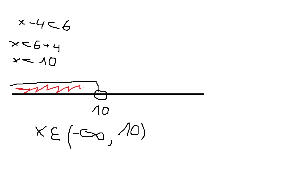 jak zaznaczyc zbior bedacy rozwiazaniem nierownosci (x-4)<_6