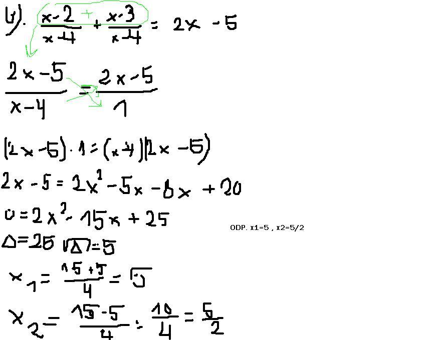 \frac{x-2}{x-4} + \frac{x-3}{x-4} = 2x-5