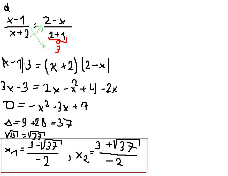 \frac{x-1}{x+2} = \frac{2-x}{2+1}